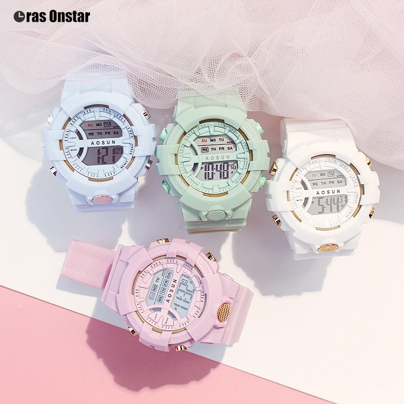 Jam Tangan Wanita Kalender Pasangan Elektronik Luminous Waterproof Digital Fashion Jelly LED Watch